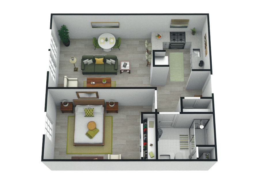 Our private and semi-private apartments have lots of natural light, and spacious storage options.